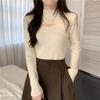 European Style Half High Neck Hollow Knit Women's Fleece Lined Sweater - Warm Autumn & Winter Base Layer
