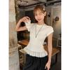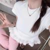 Women's White Lace Patchwork Short Sleeve T-shirt: Gentle and Slimming Spring Style