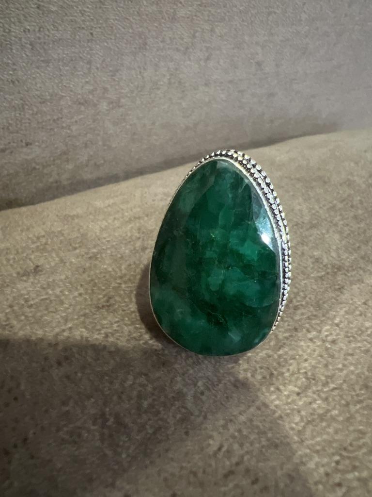 Natural Emerald Natural Gemstone 925 Sterling Silver Jewelry Ring Size 8 a7D32