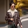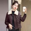 Women's Winter Korean Style PU Leather Coat with Fleece Lining and Fur Collar