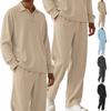 Solid-Color Textured Casual Collared Pullover Long-Sleeve Top And Pants Sports Set