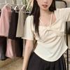 Chic Summer Short Sleeve T-shirt Slim Fit Knot Front Pure Color Womens Beautiful Gentle Top