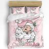 Christmas Snowman Pink Christmas Tree 3pcs Bedding Set For Double Bed Home Textile Duvet Cover Quilt Cover Pillowcase