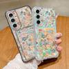 Card Bag Wallet Case For Samsung Galaxy S25 S24 S22 Ultra S23 S24 FE A56 A55 A35 A15 A16 Full Screen Pink Flower TPU Phone Cover