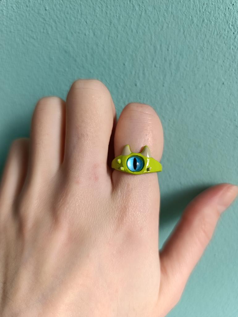 Punk Øyne Ring Søt Grønn Monster Ring For Kvinner Mote Søt Tofarget Katteøyne Åpen Parring Fest Finger Tilbehør