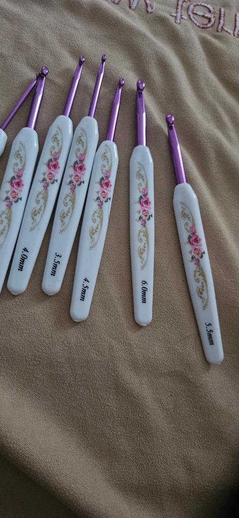 8PCS Aluminum Crochet Hook Set Knitting Needles With Soft Floral Print Plastic Handle (Large)